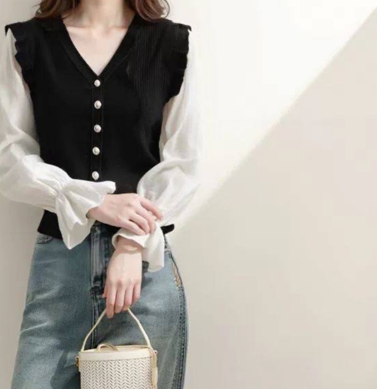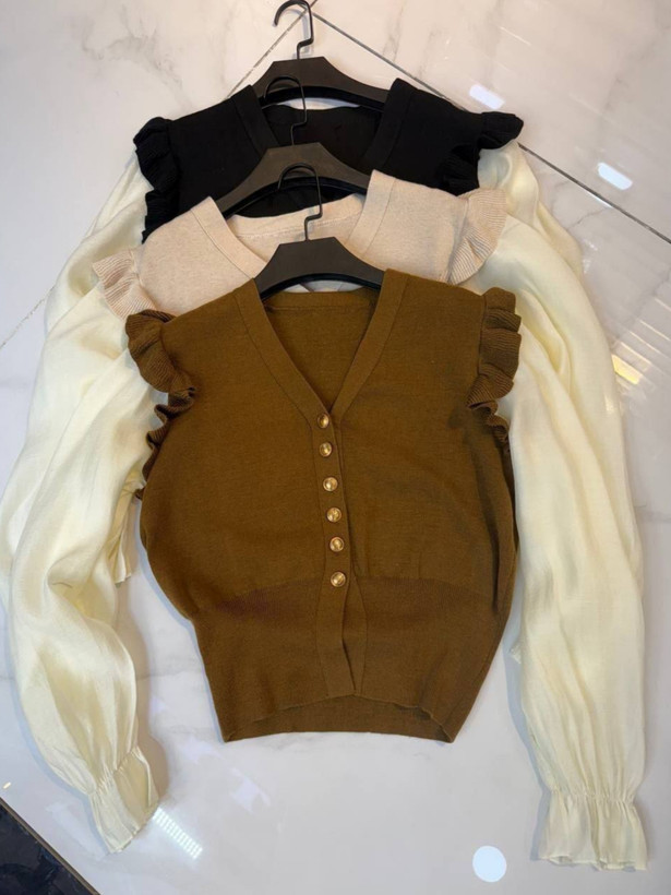 کراپ بافت زنانه آستین پف دار وارداتی ،مدل خاص و ترندی برای استایل مجلسی و اسپرت